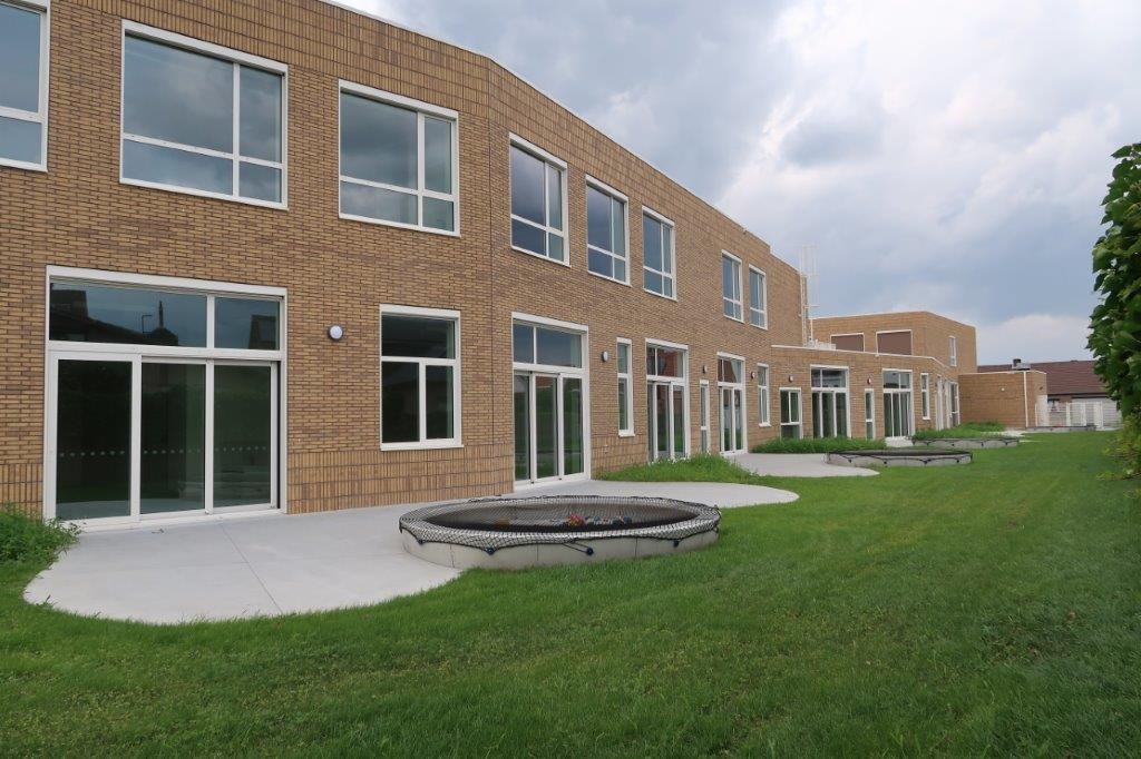 Het resultaat is een veelzijdig complex met twee bouwlagen en een vloeroppervlakte van circa 4448 m², dat plaats biedt aan 435 kinderen en veertig personeelsleden. Naast een kleuterschool met acht klassen en een basisschool met negentien klassen herbergt GBS De Stip ook klasoverschrijdende lokalen, polyvalente circulatieruimtes, zorglokalen, eetruimtes, turnzalen, administratieve ruimtes en een aantrekkelijke, gevarieerde buitenomgeving met diverse speelzones. “De kleuterschool, de eetruimtes, de turnzalen en de administratie zijn gevestigd op het gelijkvloers. De eerste verdieping is voorbehouden voor de basisschool. Daar is per leergraad een afzonderlijk paviljoen ingericht dat rechtstreeks bereikbaar is via de speelplaats. Deze vorm van clustering verkleint de impact op het binnengebied en garandeert de nodige openheid tegenover de omgeving. Om een school op kinder- en mensenschaal te verkrijgen, hebben we tevens gewerkt met luifels die de gebouwhoogte breken, een knikkende gevellijn en lichtkleurige materialen”, legt Kurt Van Hooydonk uit.