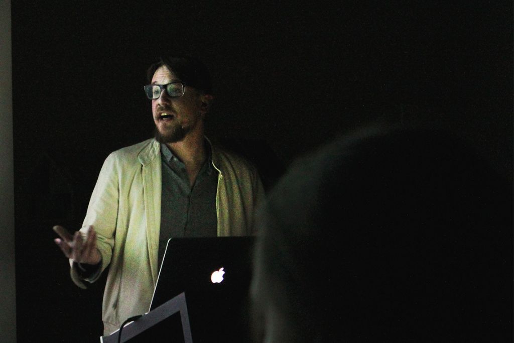 De tweede lezing in de reeks van [w]interieuravonden was een succes. De lezingenreeks wordt al voor de 17e keer georganiseerd door de richting interieurvormgeving van Thomas More Mechelen. Nadat enkele laatkomers een extra stoel bijzetten, kon Tom Mares van het ontwerpersduo PJ Mares van start gaan.