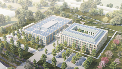 Het nieuwe gebouw wordt uiteindelijk onderdeel van een reeks onderzoeksgebouwen met een aangrenzend park. Een naastgelegen cateringgebouw kan eventueel worden gehandhaafd en op een organische manier in het nieuwe gebouw worden opgenomen. Op de begane grond leiden uitnodigende colonnades en een patio je naar de entree van twee verdiepingen hoog, waar er ook vergaderruimtes zijn ondergebracht. Het dak wordt een tuin vol bomen en planten, met uitzicht naar alle kanten: een opvallende groene kroon, zichtbaar vanaf grote afstand. Hoge raampartijen zorgen binnen voor veel daglicht en bieden gebruikers een maximaal uitzicht over de campus.