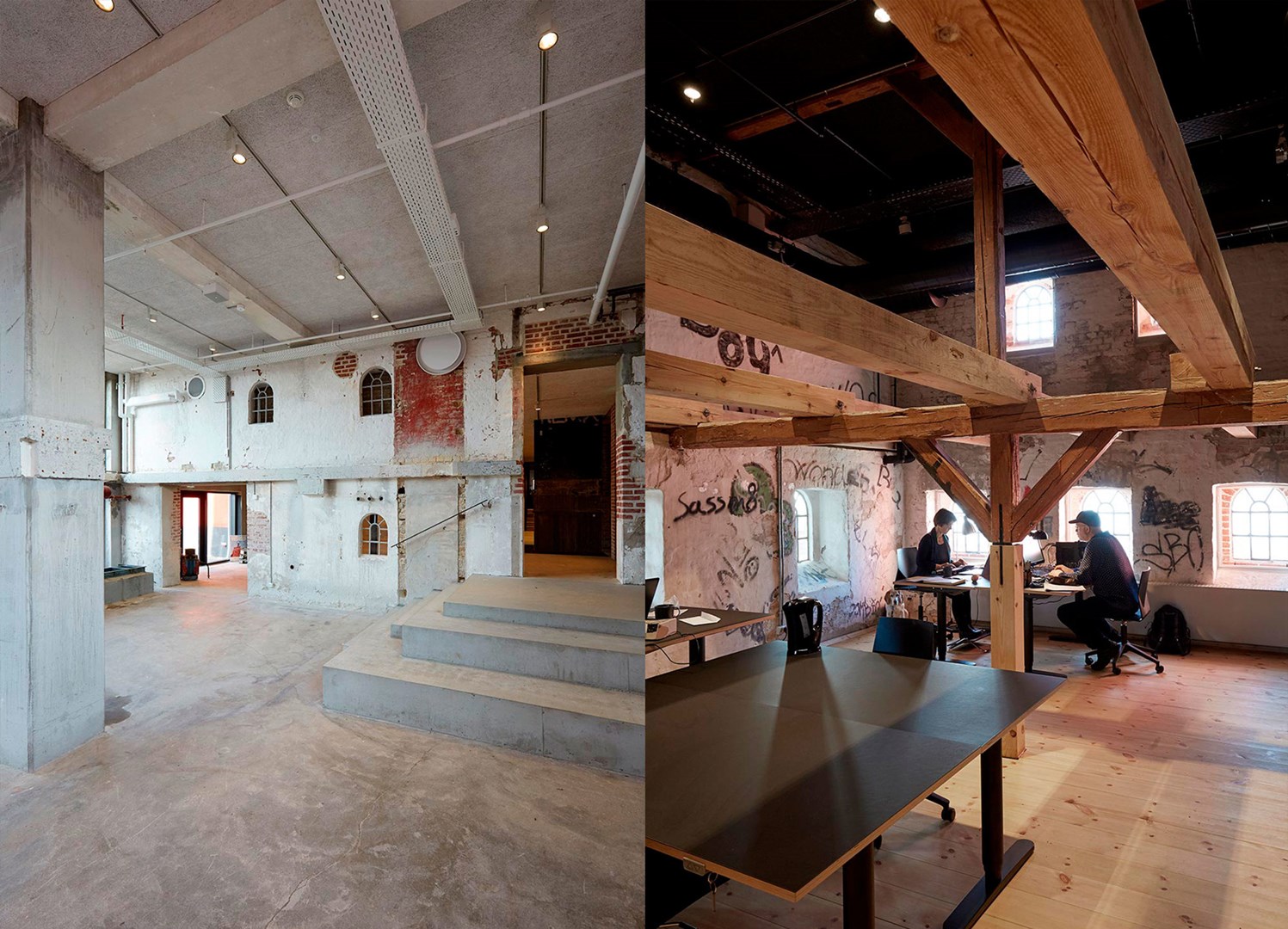 Maar de vele ervaringen met Maltfabrikken heeft het ontwerpbureau ook kunnen gebruiken in andere en recentere projecten, zoals bij Spritfabrikken in Aalborg, waar het ook gaat om 'verder bouwen aan een historisch gebouw op een gezonde manier', legt Mette Tony uit: