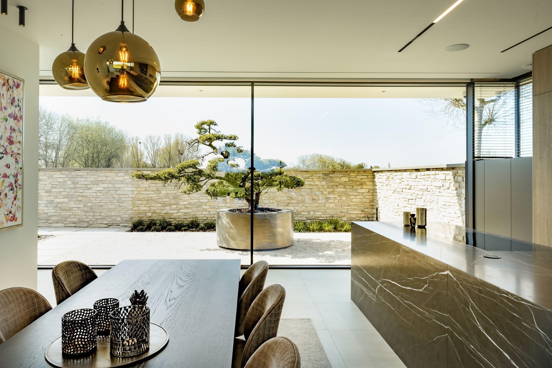 De woning maakt gebruik van driedubbele, zonwerende beglazing en een high durable coating RAL 9005, wat niet alleen bijdraagt aan de energie-efficiëntie, maar ook de levensduur van de materialen verlengt. De constructie omvat ook aanzienlijke beglazing van circa 200 vierkante meter, ondersteund door dragende buitenmuren die visueel worden versterkt door Colorbel glas.