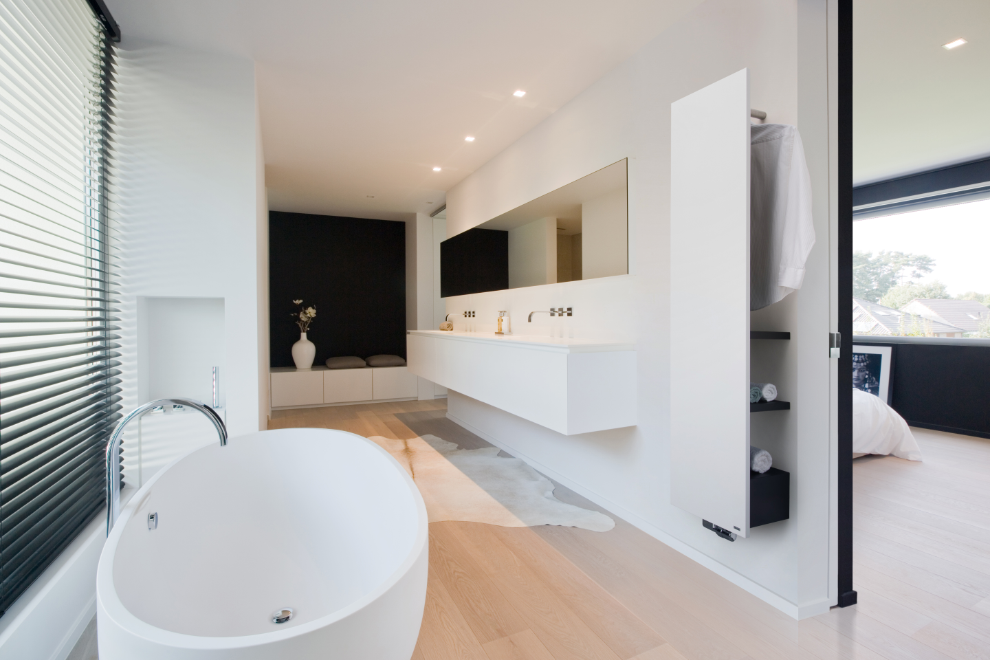 We maken momenteel een verandering door die we in alle Europese landen al heel sterk merken: badkamers zijn niet langer alleen uitgerust met klassieke warmwaterradiatoren, maar ook steeds meer met elektrische radiatoren. We zien ook een verschuiving naar radiatoren met vlakke en smallere vooroppervlakken om de warmtestraling te verhogen - zoals het Niva-model. Het is ook nieuw dat de radiator niet alleen gebruikt wordt om de kamer volledig te verwarmen – dat gebeurt vaak door vloerverwarming. Daarnaast moet de radiator ook fungeren als handdoekhouder of -warmer of zelfs als opbergruimte dienen - zoals de NivaBad van de Niva collectie. Dat zijn andere voordelen die de designradiator te bieden heeft.