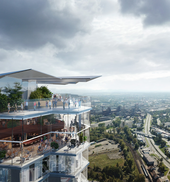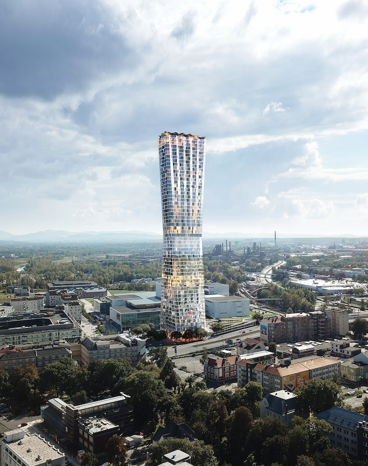 Ostrava Tower weerspiegelt het industriële erfgoed en de utilitaire architectuur van de stad. Dit project onderstreept het belang van het herdenken van de typologie van wolkenkrabbers en wordt zo een belangrijk aantrekkingspunt.