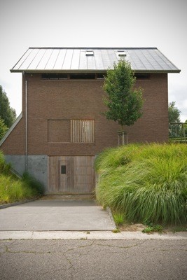 Het maaiveld ligt ongeveer 1 meter hoger als de straat. Precies dit laatste vormde het uitgangspunt om het gebouw op te richten op een sokkel, ingegraven in de grond, met daarop een eenvoudig rechthoekig volume voorzien van een zadeldak. Het gebouw weet zich op deze manier perfect te integreren binnen de landelijke architectuur uit de omgeving.
