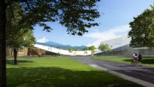 Sou Fujimoto Architects heeft twee organische structuren ontworpen die van elkaar gescheiden worden door een binnenplein. Het grootste gebouw krijgt een enorm wit beloopbaar dak dat door het bureau wordt omschreven als ‘open heuvel’. De structuur refereert naar het berglandschap rondom. De volumes steunen op houten zuilen gescheiden door glas, wat een vloeiende beweging creëert tussen binnen en buiten