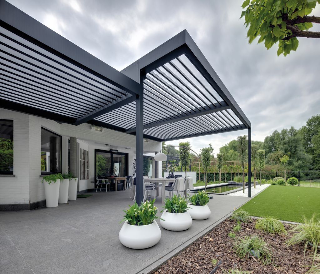 Deze ervaren metaalspecialist maakt elk lamellendak op maat: van eenvoudige concepten tot de meest uitdagende architectuur. Bovendien haal je het beste uit elk seizoen – want de kantelbare lamellen zorgen op elk uur voor de juiste temperatuur. Ze draaien vlot open om de laatste herfstzon door te laten, maar ook even gemakkelijk weer dicht om te beschermen tegen wind, sneeuw of regen. De Umbris-lamellendaken ogen strak en hedendaags en onderscheiden zich in hun minitieus maatwerk.