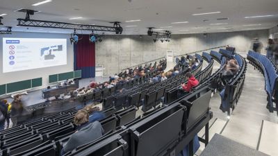 Vermits al snel duidelijk werd dat het moeilijk zou worden om de beoogde functiemix volledig bovengronds te realiseren, besliste het projectteam om het auditorium en de filmzalen onder te brengen op de ondergrondse verdieping. “Een cruciale beslissing”, benadrukt Kristof Vanfleteren. “De verplichte onderwijsfunctie was lang de achilleshiel van het project, maar via de bouw van het ondergrondse auditorium (capaciteit: 750 personen) hebben we die eis uitstekend ingevuld. Door ook de filmzalen en de kantoren van Fonk vzw op niveau -1 te vestigen, gaven we de zone onder het maaiveld een extra dimensie.” Bovendien hebben studenten en cinemabezoekers allerminst het gevoel dat ze in een kelder terechtkomen. “Via de uitstekende integratie van de brede inkompartij hebben we er namelijk voor gezorgd dat het erg natuurlijk aanvoelt om vanuit de Vesaliusstraat de trap naar beneden te nemen”, aldus John Eyers.