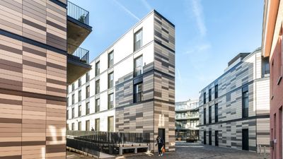 Het Vesalius-project blinkt uit door zijn specifieke functiemix. Een expliciete eis van het stadsbestuur, dat maar al te goed besefte dat het zaak was om het zuidoostelijke gedeelte van de Leuvense binnenring nieuw leven in te blazen. “De Vesaliusstraat was lang de gevoelsmatige grens van het historische centrum. Wie niet naar de les moest, had er weinig te zoeken – dat was zelfs ‘in mijn tijd’ al het geval. Met het Vesalius-project wilde de stad ook in het tweede deel van de Tiensestraat een unieke sociale dynamiek creëren”, legt architect John Eyers (CEO bij Jaspers-Eyers Architects) uit. Het ruimtelijke structuurplan stipuleerde dat de site absoluut een onderwijsfunctie moest bevatten, inclusief een gemengd woon- en handelscomplex. “De onderlinge interactie tussen de plaatselijke bewoners, de handels- en horecazaken en de af en aan lopende studenten moest ervoor zorgen dat er een nieuw bruisend stadsdeel ontstond.”