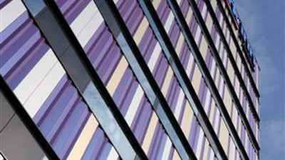 Om die intrigerende kleurendynamiek optimaal te kunnen uitspelen, zochten de architecten een geveltype dat het effect nog zou kunnen versterken. Via het Belgische ME Construct kwamen ze ertoe om de coating aan te brengen op geplooide gevelcassettes. Dit zijn smalle hoge stroken die onder verschillende hoeken geplaatst zullen worden om de kleurtransformaties maximaal tot uiting te laten komen. De Mica-pigmenten reflecteren enerzijds hun eigen kleur, maar laten het invallende licht ook deels doordringen naar de onderliggende basislaag, die op haar beurt dus ook een beetje zichtbaar wordt. Door te spelen met verschillende invalshoeken bekomt men met andere woorden een uiterst dynamisch visueel spektakel. “ME Construct ontwikkelde een aantal projectspecifieke panelen die per gevel en per niveau verpakt werden in kisten,” verduidelijkt Ben Bomhals, directeur van ME Construct. “De logistieke uitdaging was dus enorm. Het betrof hier immers 10.000 panelen in verschillende kleuren, lengtes en breedtes. We werkten al samen met Euramax in Abu Dhabi, waar we instonden voor de dak- en wandbekleding van het Ferrari World Project. Dat smaakte naar meer, en we waren dus erg blij dat we ook voor dit project de krachten konden bundelen.”