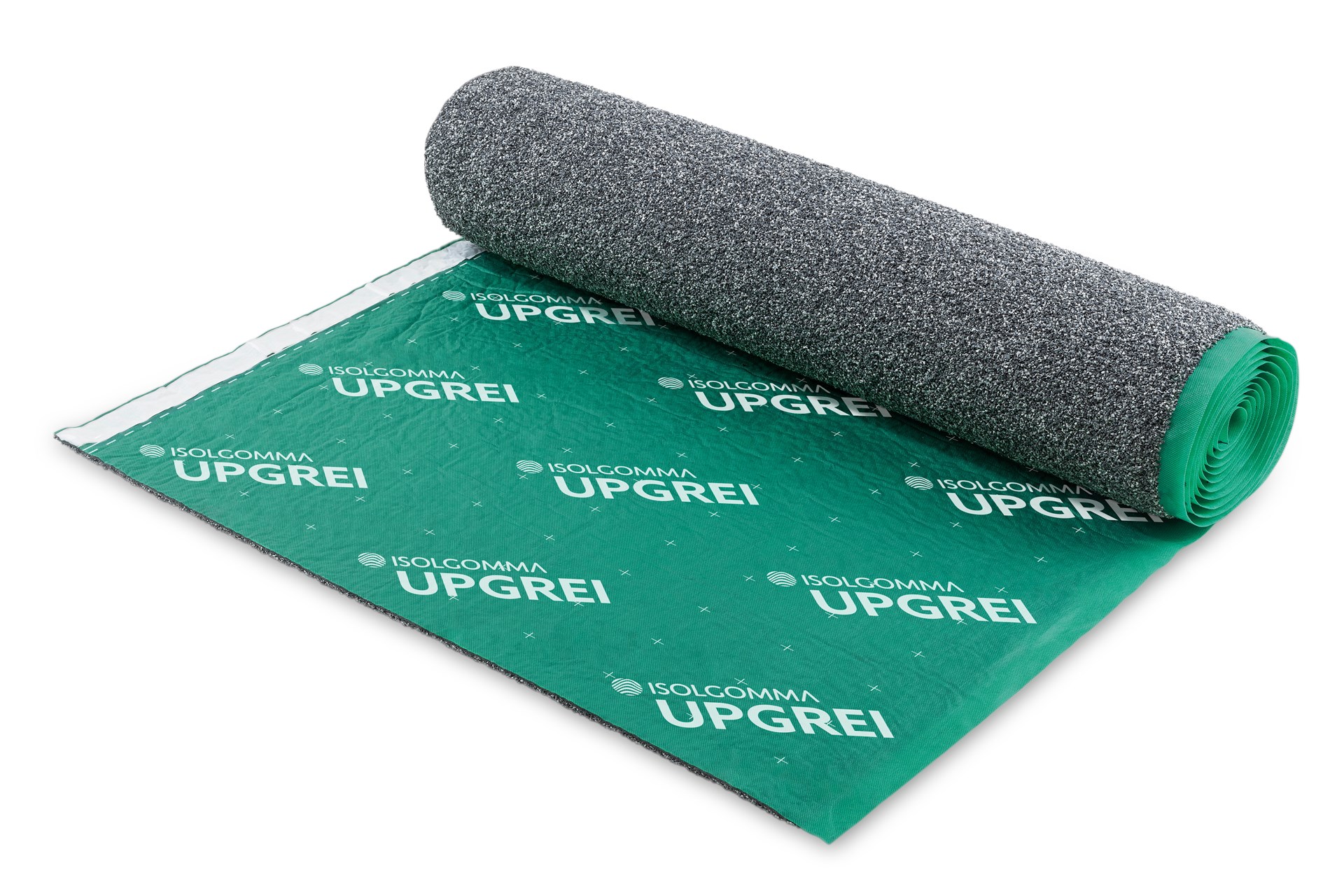 10 mm dikke akoestische isolatierollen, gemaakt van EPDM rubbergranulaat dat met carboxylaatlatex bindmiddel is verankerd op een drager, gemaakt met niet-geweven, groen gekleurde, anti-rekfilm en polyestervezel. De afmetingen van de rol zijn: 5,0 m lengte, 1,04 m breedte inclusief 40 mm klevende zijrand voor rollen die elkaar tijdens de installatie overlappen. De totale massa bedraagt 2,65 kg/m². Demping contactgeluidsdruk 26 dB, brandreactie klasse E, warmtegeleidingscoëfficiënt 0,043 W/m K.