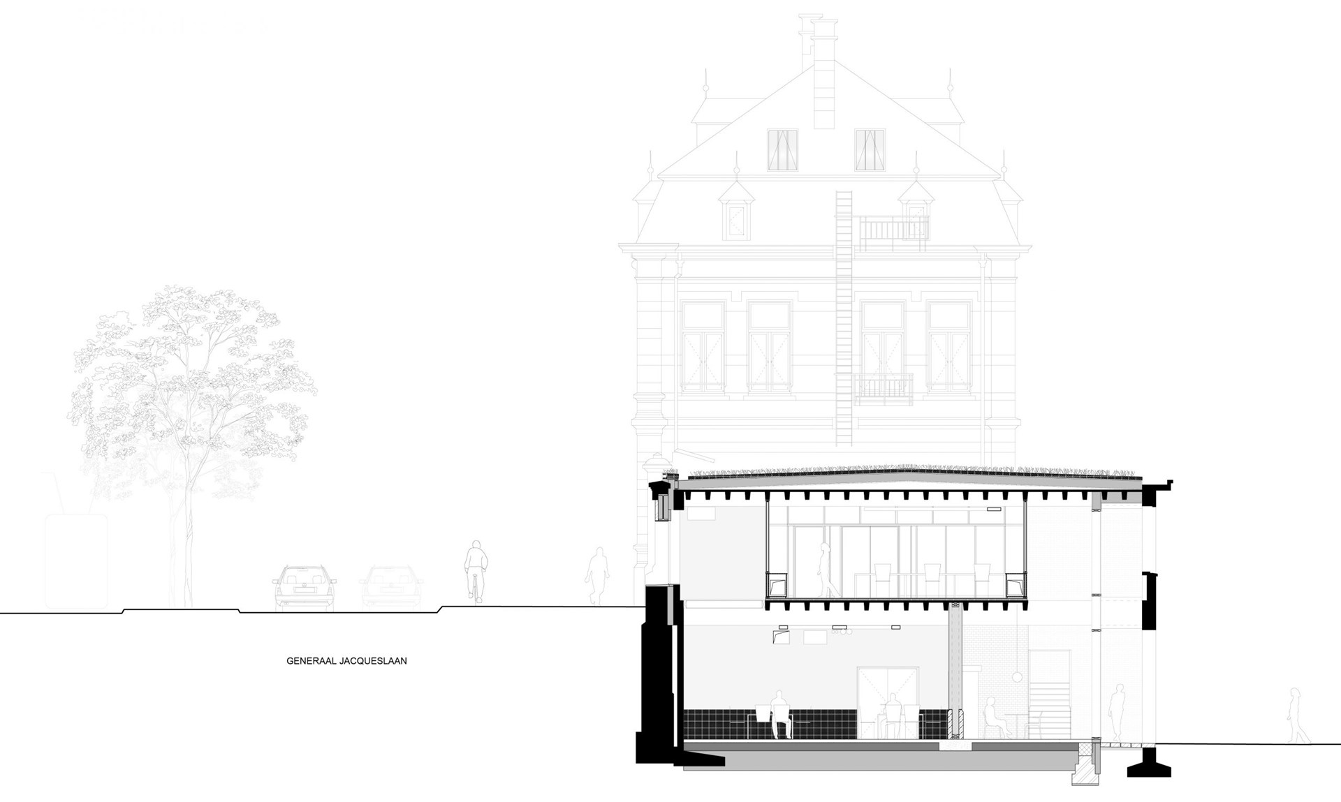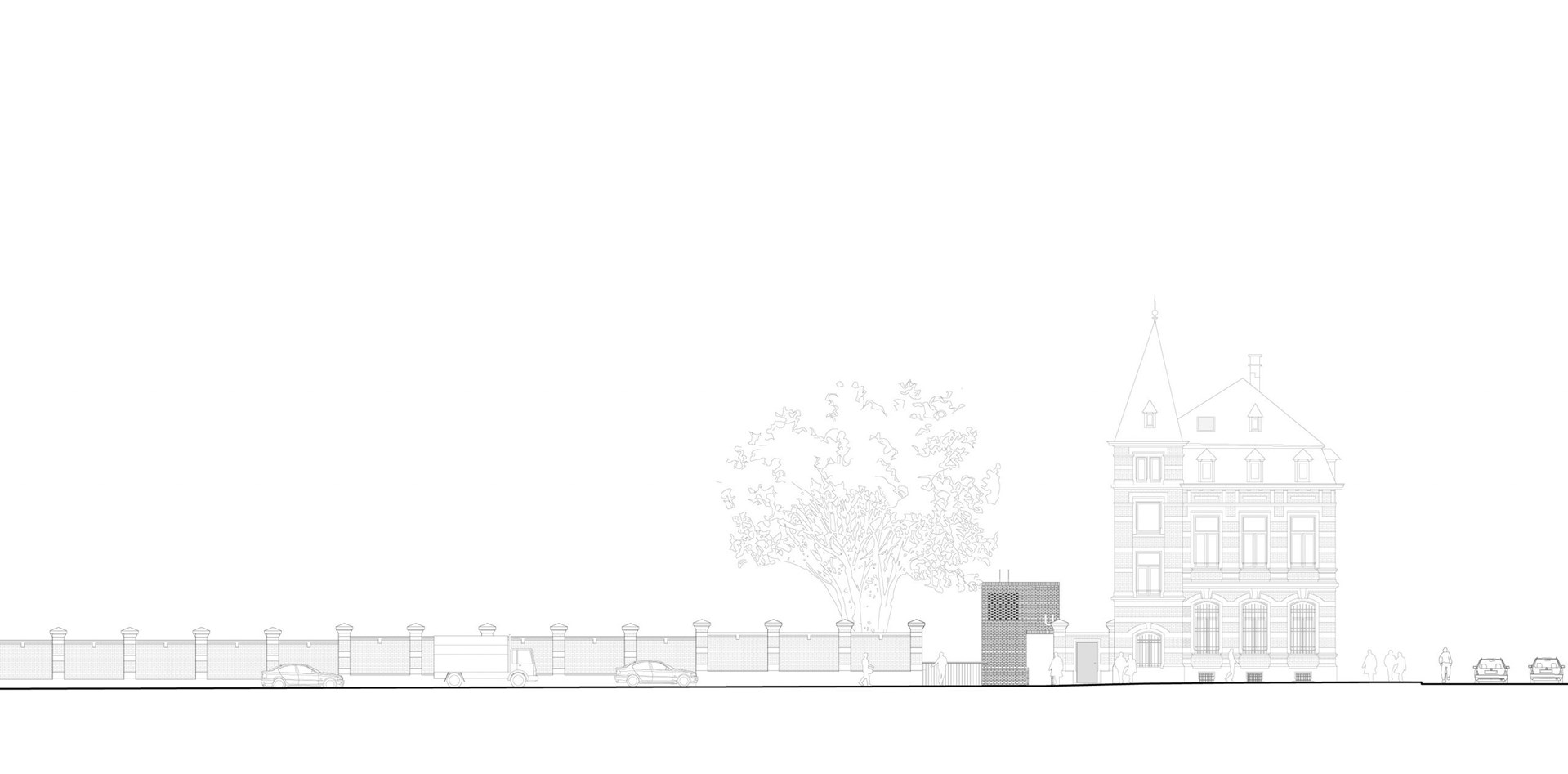 Het ontwerp laat zich sterk leiden door de bestaande gebouwen en de circulaire ambities. Dit bepaalt wat er mogelijk is qua programma en lay-out. Toevoegingen, zoals een tussenbouwvolume, zijn voorzien in houtskelet. De verblijfruimtes krijgen een mezzanine in houtbouw die demonteerbaar is. Het principe van woonboxen wordt toegepast en nieuwe interventies zijn eenvoudig hermonteerbaar en integreren alle diensten volgens het served-servant concept.
