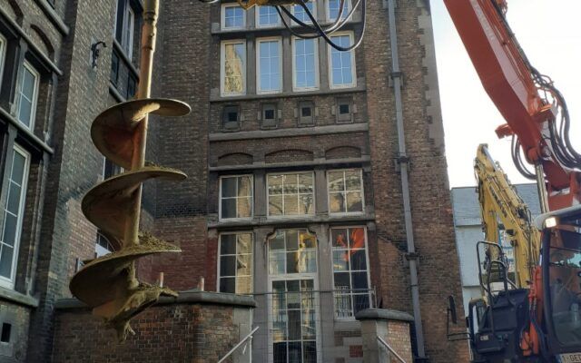“Het bijzondere aan dit project zijn de verticale infiltratiebuizen die het regenwater ondergronds in de bodem laten sijpelen. Normaal gebeurt dat met horizontale buizen, maar daarvoor was er niet genoeg ruimte op de site. De PP-Rib-wallbuizen zitten 6 meter diep in de grond. Voor dit project schakelden we Deschacht in voor de materialen. De studiedienst van Deschacht maakte van het rioleringsplan van de architect een optimaal uitvoeringsplan”, gaat Lecompte verder.