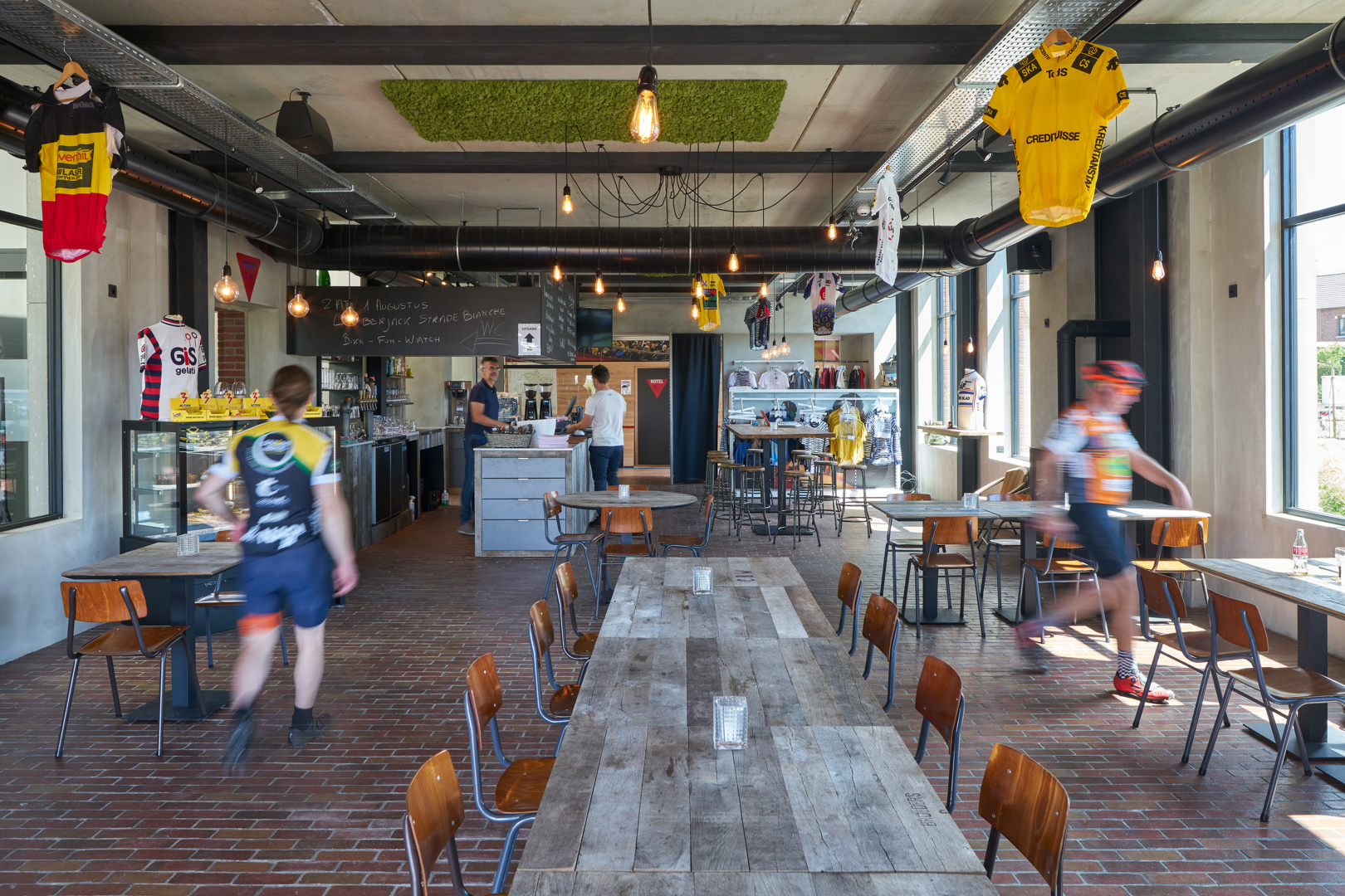 De initiatiefnemers van Café Coureur noemen zichzelf véloromantiseurs en bouwen een belevingsplek waarin elke ruimte afgestemd is op de noden van de fietser. Architecturaal werd die visie vertaald in een zorgvuldige omgang met het bestaande erfgoed, aangevuld met een strak en functioneel nieuw volume.