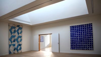 Op de bovenste verdieping loopt een architectuurtentoonstelling over een groep Franse kunstenaars die fundamenteel onderzoek deden naar schilderkunst in de jaren 69-70: ‘Omtrent Supports/Surfaces’.