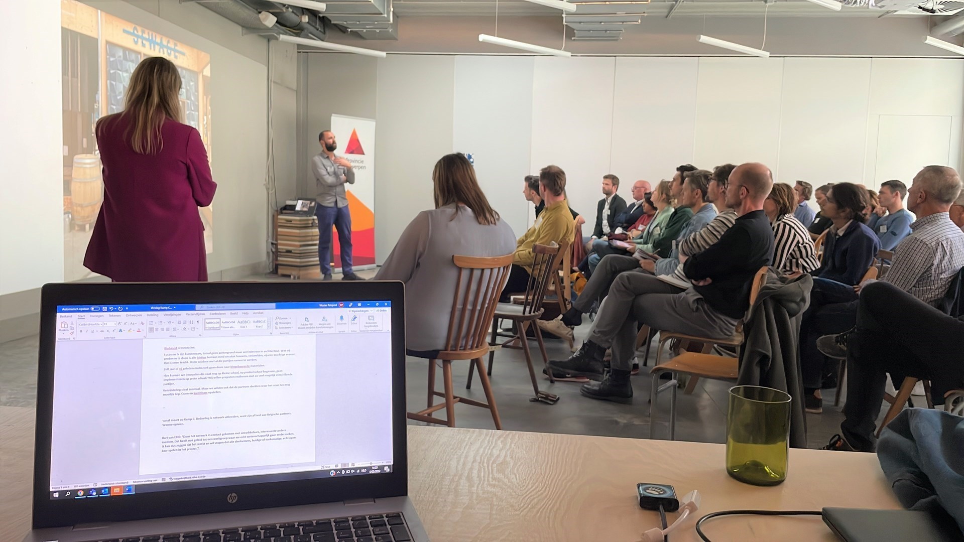 Om die te vinden, organiseerde Kamp C op 5 mei in Circuit in Antwerpen, het event 'Regionale waardeketen in de bouwsector', waarin het ook meer uitleg gaf over het hele project. Met Jeroen Vrijders van het WTCB – The Exploded View heeft inhoudelijk een sterke link met het CBCI-project, waar naast Kamp C en andere partners ook het WTCB bij betrokken is –, Rein Dessers van Pro Natura, Eric Klarenbeek van Klarenbeek & Dros Rob Bogaarts van Buro Bogaerts en Lode Goethals van Bast architects & engineers – via videoverbinding – namen tal van sprekers die ervaring hebben met circulair en ecologisch bouwen het woord, net als Pascal Leboucq van Biobased Creations.