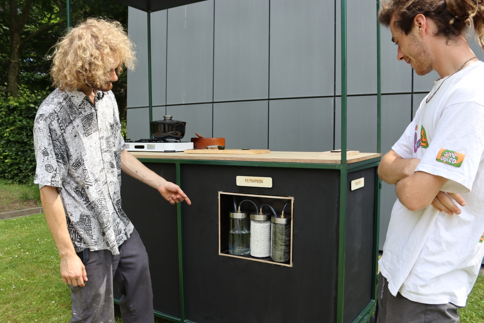 De derde en laatste eervolle vermelding ging naar Table Zero van Michiel Vindevogel (Howest). Table Zero is een buitenkeuken waarmee je zogenaamd circulair kunt koken. Het keukenafval komt via een opening in het werkblad terecht in digestievaten, waar bacteriën het afval omzetten naar een voedzame slurry en biomethaan, een gas waarop je kunt koken. Na filtering wordt het gas opgeslagen in een luchtzak met atmosferische druk, waardoor het niet kan ontploffen. Op die manier krijg je een 100 procent autonome keuken.