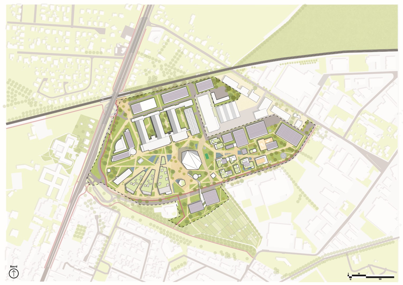 Het masterplan combineert een robuust en duurzaam grid met flexibele plug-ins en adaptieve bouwvolumes. Zo kunnen grotere en kleinere bedrijfsruimte worden gecreëerd en biedt de openbare ruimte een steeds veranderend aanbod. Het plug-inprincipe maakt de campus ook tijdens de bouw een volledig operationele en aantrekkelijke omgeving. Tijdelijke programma's zoals een Living Lab of Incubator definiëren de identiteit van de campus als een hightech innovatiedistrict in alle ontwikkelingsfases. Systemen voor energie en water worden in eerste instantie per gebouwcluster georganiseerd: zo worden duurzaamheidambities al haalbaar tijdens de gefaseerde ontwikkeling.