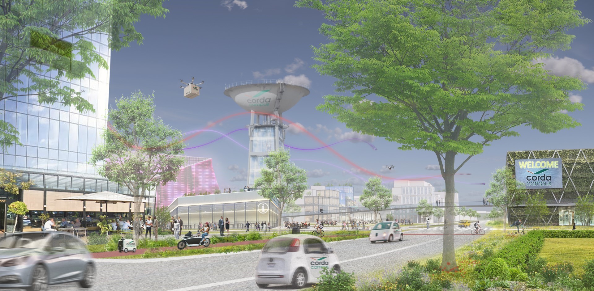 Een gemengd programma van werken, research, wetenschap, startups, sport, recreatie en short stay maakt dat de campus alle uren van de dag een inspirerende plek is om te verblijven. Het netwerk van loop- en fietspaden verbindt de bestaande bebouwing met de nieuwe ontwikkelingen en maakt van de verschillende wijken van de campus een eenheid. In het hart van de campus ligt een levendig publiek plein waar de Corda Arena, een hypermodern digitaal event centre voor e-sports, conferenties en evenementen met 4.000 zitplaatsen, wordt gerealiseerd.