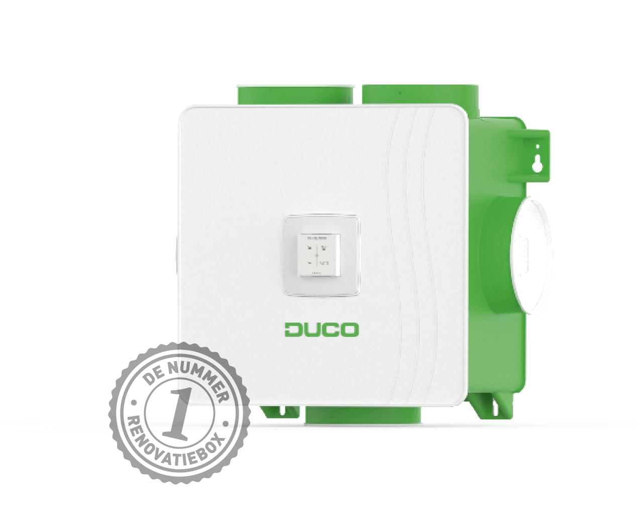 DUCO biedt verschillende oplossingen aan voor het vervangen van verouderde ventilatiesystemen. Eén van deze oplossingen is de DucoBox Reno. Deze ventilatiebox werd speciaal ontworpen voor vervangingsprojecten. Met zijn compacte formaat en slimme kopieerfunctie kan de installateur tot wel 25% sneller werken. Bovendien zijn de schroefplaatsen van de DucoBox Reno op dezelfde locatie voorzien als die van verouderde modellen, waardoor het vervangingsproces nog eenvoudiger wordt.