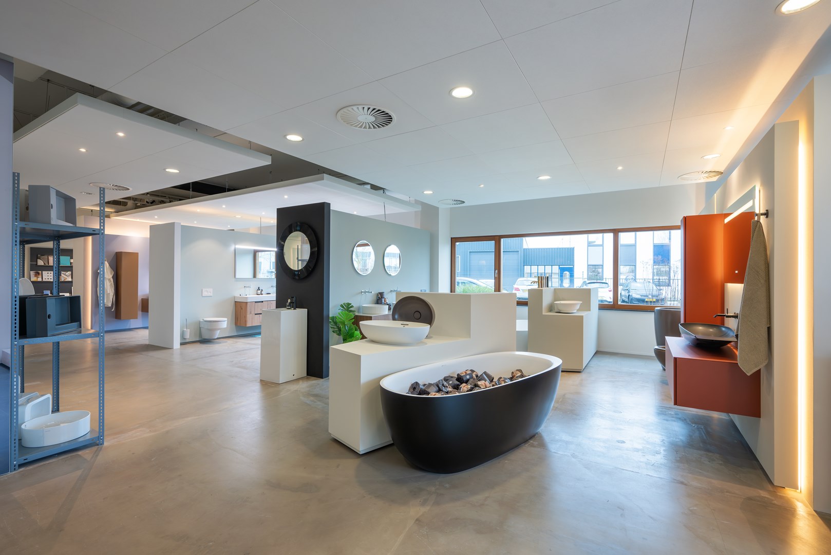 De showroom van LAUFEN Benelux heeft een volledige transformatie ondergaan met een vernieuwde indeling, meer lichtinval en zorgvuldig samengestelde kleuren op de muren – afgestemd op de collecties.