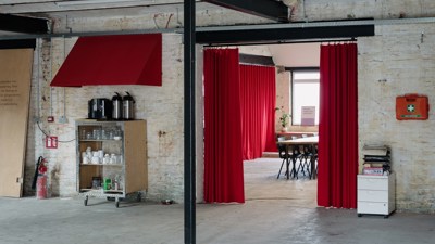 Het deel-restaurant en de workshop zolder, samen goed voor 350 m2 worden momenteel volledig ingericht met ecologische materialen, hergebruik en circulaire energiesystemen in samenwerking met het ontwerpbureau Onbetaalbaar.