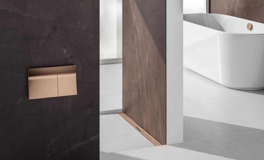 We stellen u dan ook graag enkele inspiratieproducten met passende kleuren voor: de nieuwe douchegoot Advantix Cleviva, de nieuwe toiletbedieningsplaten van de assortimenten Visign for More en Visign for Style. En de badkuipuitrusting Visign uit de series Multiplex Trio, Multiplex en Tempoplex. Bijkomende troef van de Multiplex Trio: die uitrusting voert het water elegant naar de badkuiprand waardoor de visueel storende uitloop van de armatuur overbodig wordt.