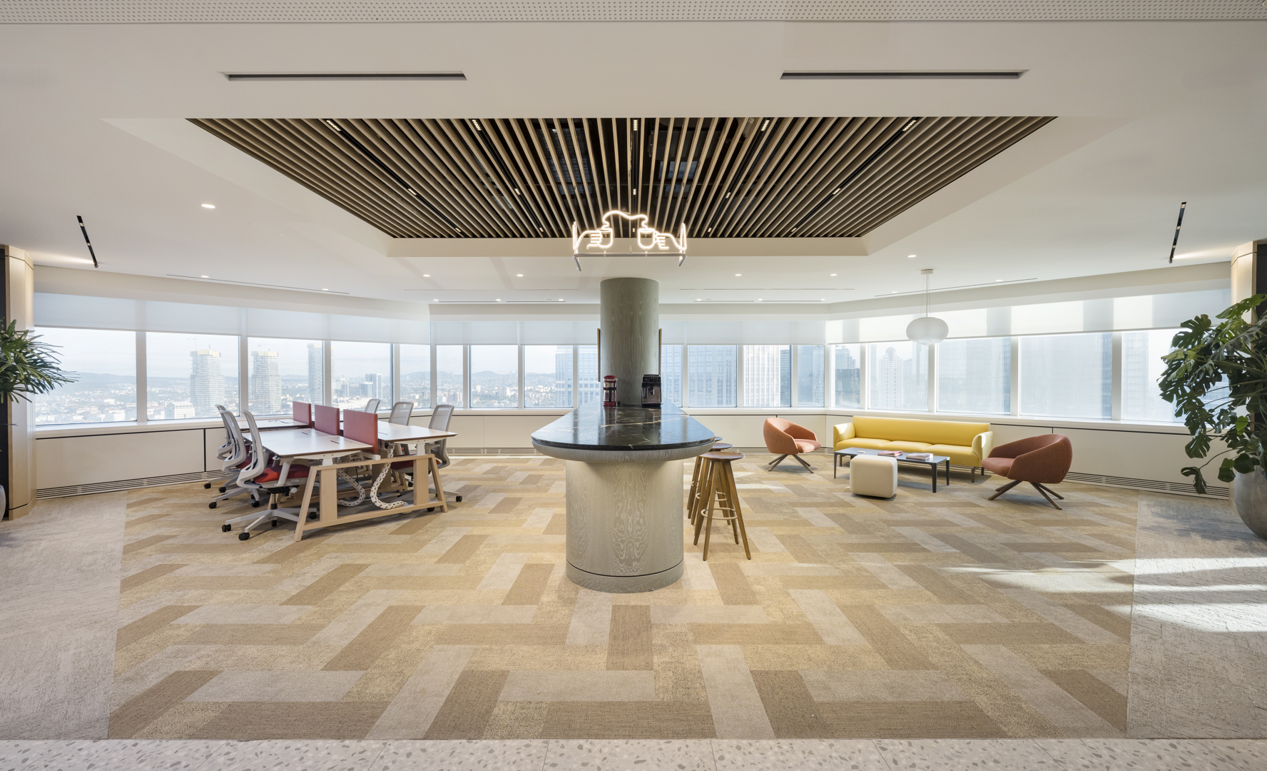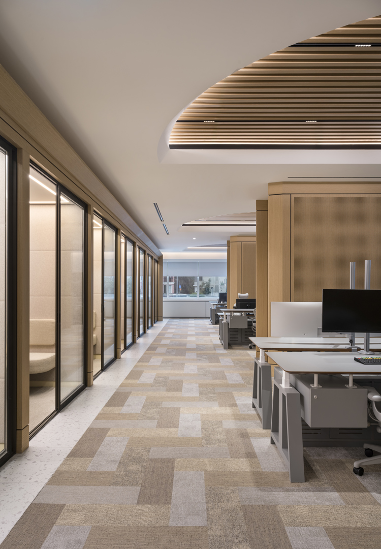 Volgens Autoban-oprichter Seyhan Özdemir Sarper vertrekt het ontwerp vanuit de ambitie om een werkomgeving te creëren die tegelijk verfijnd en toegankelijk aanvoelt. Materialiteit speelt daarin een belangrijke rol. De geweven vloeren van 2TEC2 introduceren bijvoorbeeld een tactiele kwaliteit die contrasteert met de strakke architecturale lijnen.