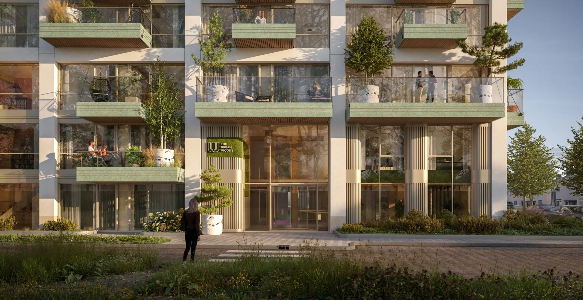 Langs de buitenkant zal The Urban Woods vooral opvallen door al het groen tegen de gevels. Dat moet het project klimaatbestendig maken en de biodiversiteit in de stad bevorderen.
