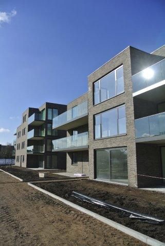 Het project zat al een poos in de pijplijn. Nadat de stedenbouwkundige vergunning in 2008 eindelijk toegewezen werd, bracht grondeigenaar Reficom definitief schot in de zaak. Na de afbraak van de feestzaal en de aanpalende gebouwen kon de bouw van de nieuwe residentie definitief beginnen. Gevraagd naar de troeven van het project verwijst Koen Van Orshaegen van De Architecten nv zowel naar de ruimtelijke als de functionele integratie van de nieuwe gebouwen: “Ze worden loodrecht op de openbare weg ingeplant, zodat de volumes aan de straatzijde minimaal ‘wegen’ op het straatbeeld,” vertelt hij. “We kozen voor compacte volumes. De grondbezetting van het voorgestelde ontwerp beslaat slechts een vierde van de totale terreinoppervlakte, waardoor er veel ruimte overblijft voor privaat en gemeenschappelijk groen. Elk gebouw telt drie bouwlagen, met plaatselijk een vierde bouwlaag als extra accent. We hebben veel aandacht besteed aan het volumespel, schaalverkleining en herkenbaarheid om te vermijden dat de bouwblokken een monotoon karakter krijgen. De gevelmaterialen zijn afgestemd op deze van de buurt . Het gaat om een combinatie van gevelmetselwerk, sierbeton, aluminium buitenschrijnwerk en houtaccenten.”