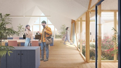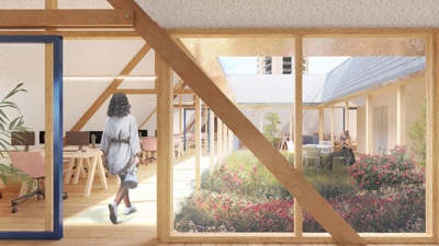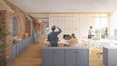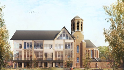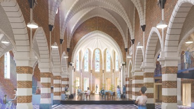 Voormalige kerk wordt kantoorgebouw met buurtfuncties (OFFICEU architects)