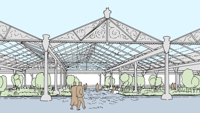 Ook vergroening speelt een centrale rol. Onder de hangars, op de plek waar vroeger een treinspoor liep voor goederenoverslag, komt een stadstuin van 30 op 40 meter. De tuin wordt ingericht met zitbanken, lage beplanting en struiken tot zes meter hoog, en brengt een menselijke schaal in de lange kaairuimte. Waar mogelijk worden de daken boven de tuin opengewerkt om meer daglicht toe te laten. Verder stelt het ontwerp voor om een nieuw paviljoentje – geïnspireerd op de vroegere 'enclos' – toe te voegen, bijvoorbeeld als standplaats voor stedelijke diensten. Ook het voormalige gidsenlokaal onder de hangars wordt opgeknapt voor een nieuwe invulling.