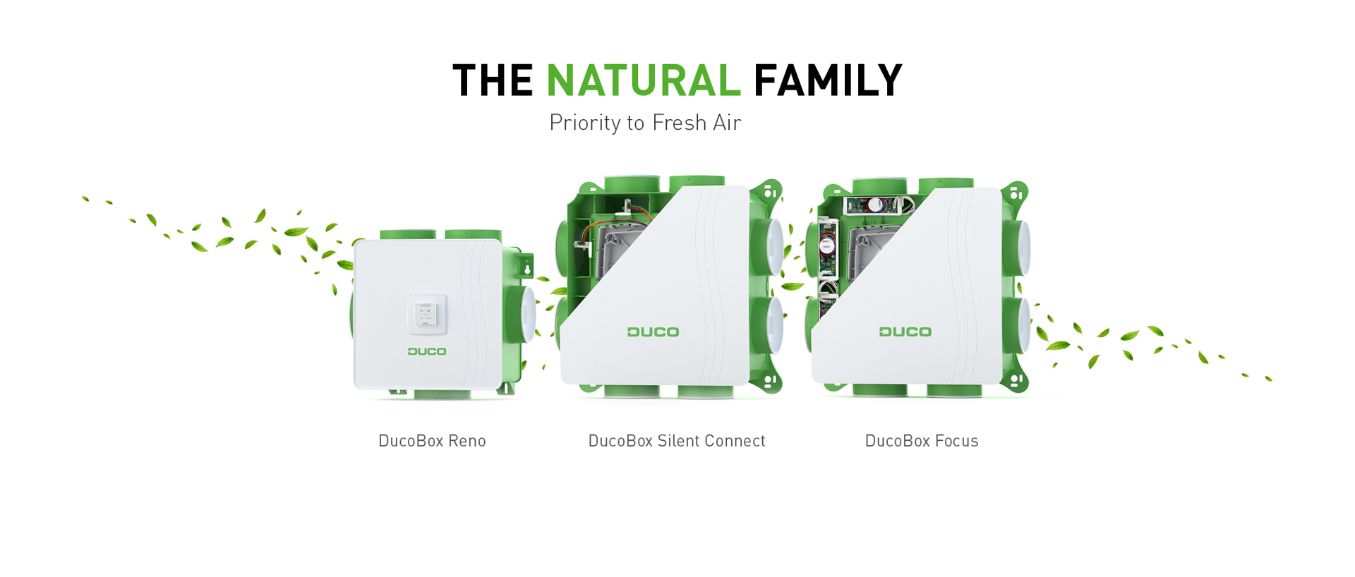 Onder de noemer The Natural Family stelt DUCO een reeks geavanceerde mechanische ventilatiesystemen voor, gebaseerd op systeem C. Deze oplossingen combineren hoog comfort met energiezuinigheid en zijn ontworpen om elk binnenklimaat aangenamer te maken. Dankzij intelligente en fluisterstille technologieën past dit gamma perfect binnen duurzame bouwprojecten.