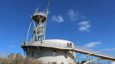 De uitkijktoren zorgt voor een goede beleving van het volledige natuurgebied vanuit de lucht, maar biedt de passanten ook een uitgelezen kijk op het kustlandschap en de zee.