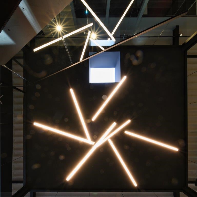 Met een wowgevoel binnenkomen was eveneens een belangrijke wens. De imposante inkomhal doet in dit opzicht al meteen zijn duit in het zakje met een royaal ruimtegevoel, een fraaie centrale trap en een mikado van ledprofielen. Maar hét kloppend hart van het gebouw is toch het befaamde KUKA Kaffee, een gezellige plek waar de aanwezige medewerkers samen kunnen koffiedrinken, lunchen, relaxen en keuvelen.