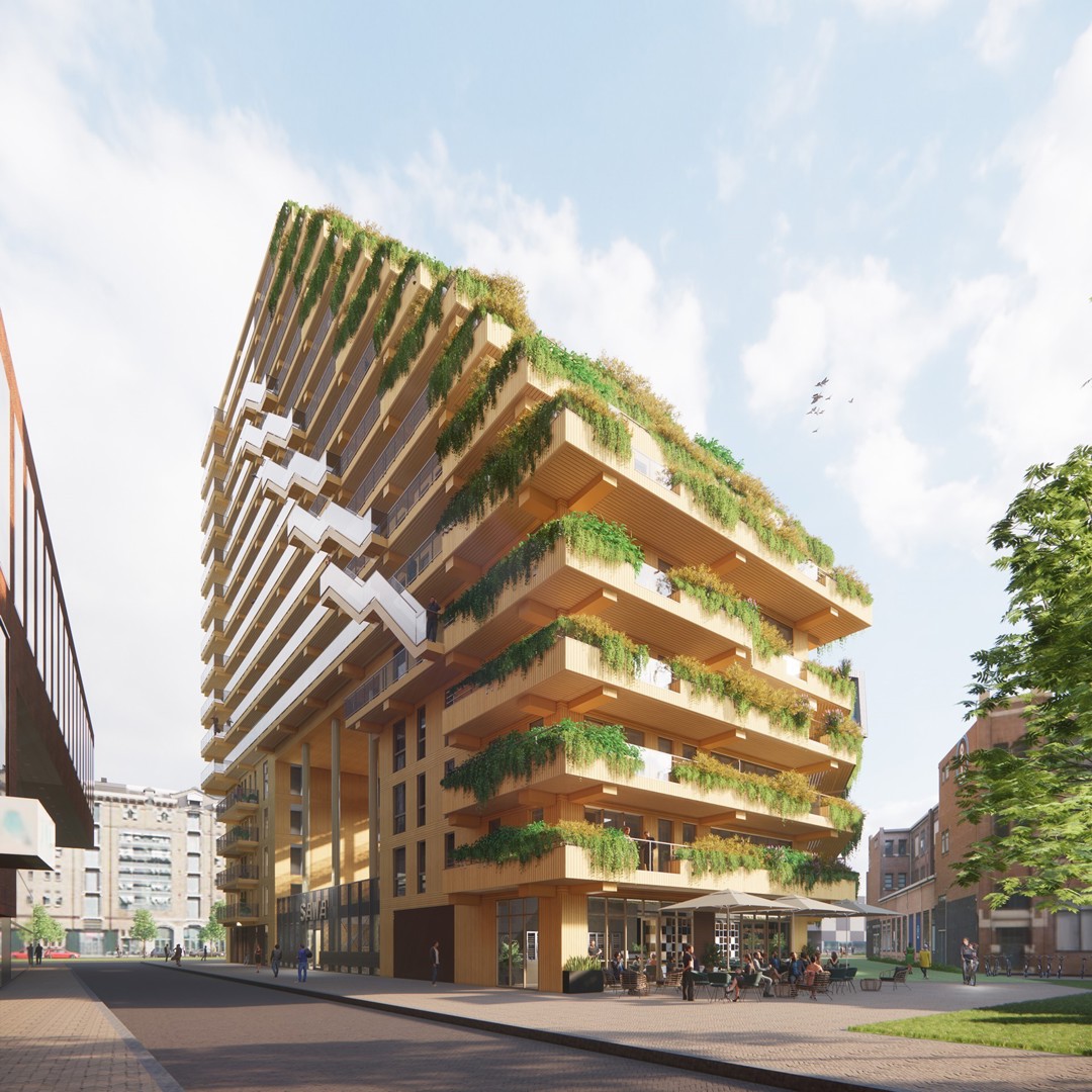 In Rotterdam nadert de realisatie van SAWA, met een hoogte van vijftig meter de hoogste houten woontoren van de stad, zijn einde. Naast de houten structuur, die volledig demonteerbaar is, kenmerken ook aanpasbaarheid en de groene gevels het bijzondere woonproject. SAWA wordt ontwikkeld door NICE Developers en ERA Contour naar een ontwerp van Mei architects and planners.