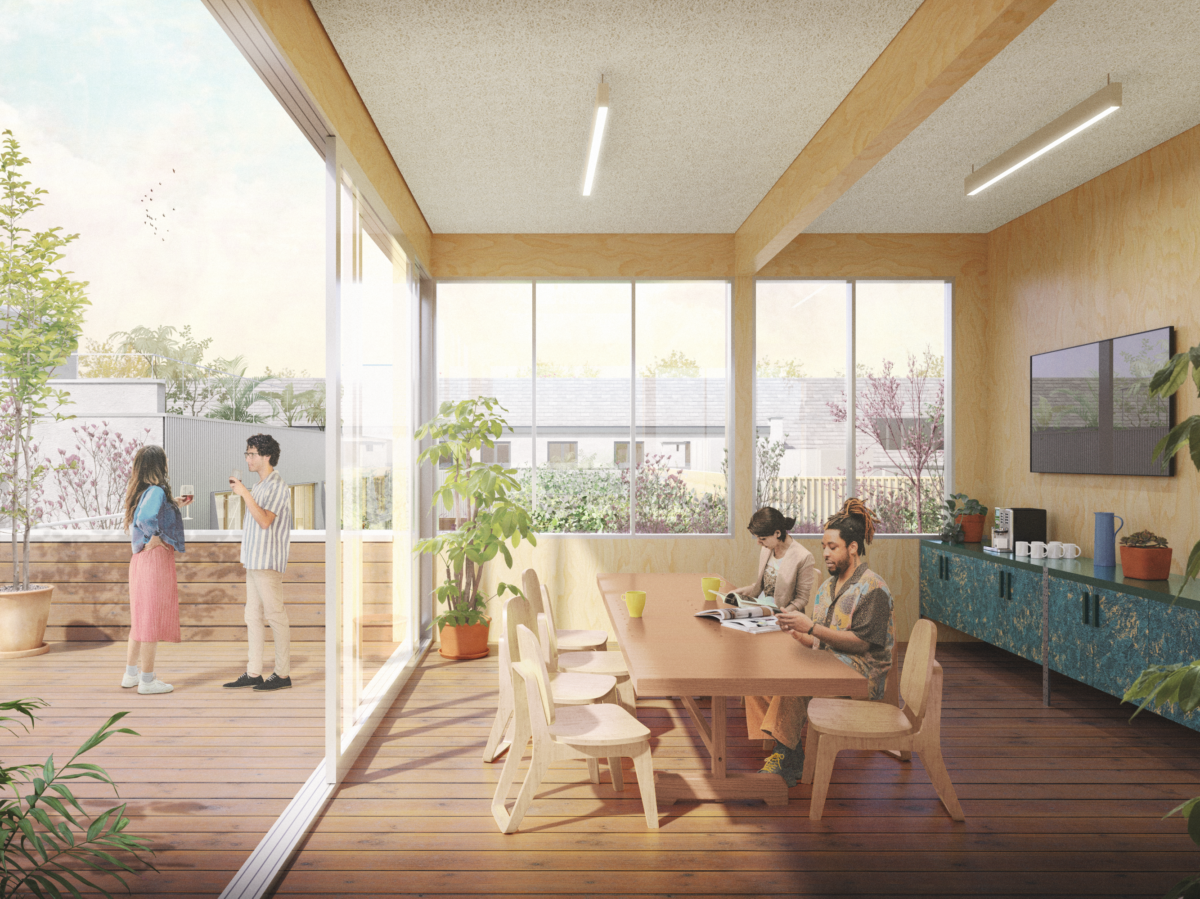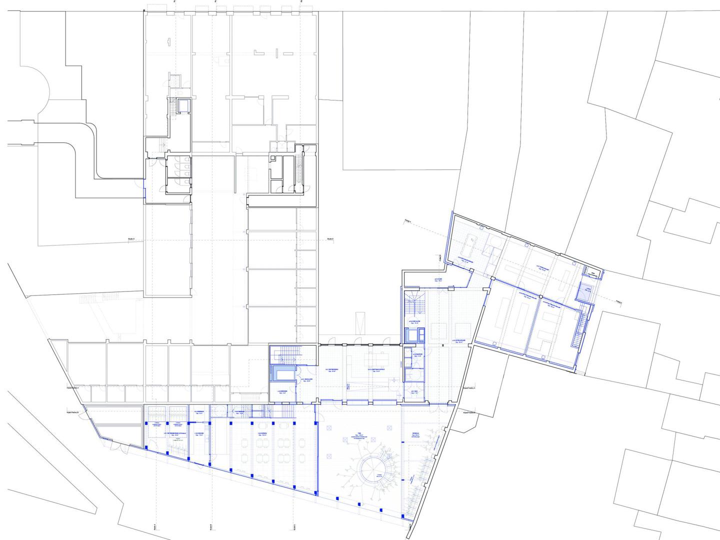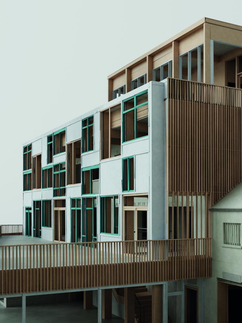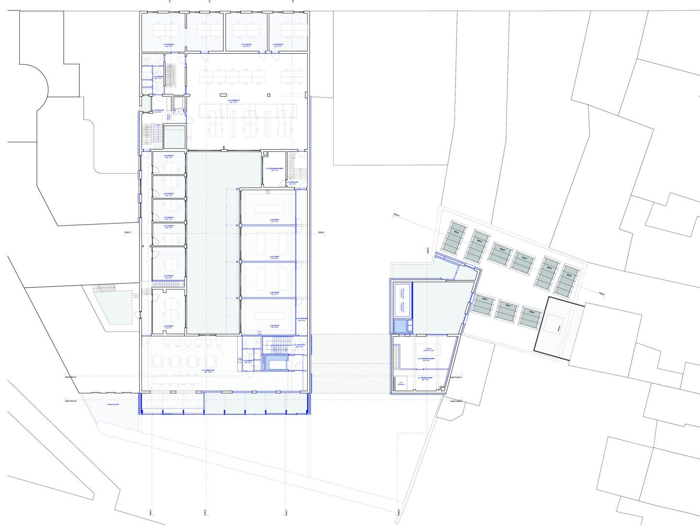 Het concept voor de site vertrekt vanuit de gedachte dat de Impact Factory er in essentie al is en niet volledig nieuw gebouwd hoeft te worden. Er wordt resoluut gekozen voor maximaal behoud en minimale interventie, waarbij circulaire bouwprincipes de leidraad vormen voor elke ontwerpkeuze doorheen het proces. In de Studio wordt de bestaande structuur benut door kantoren en werkruimtes te organiseren rond een nieuwe galerij aan de zuidgevel. Die ingreep lost de beklemmende interne circulatie op en dient tegelijkertijd als zonnewering voor de ateliers. Terwijl de noordzijde een grote ruimte vormt met ramen op het zuiden, is de zuidzijde opgedeeld in kleinere kamers die profiteren van een doordachte lichtinval.