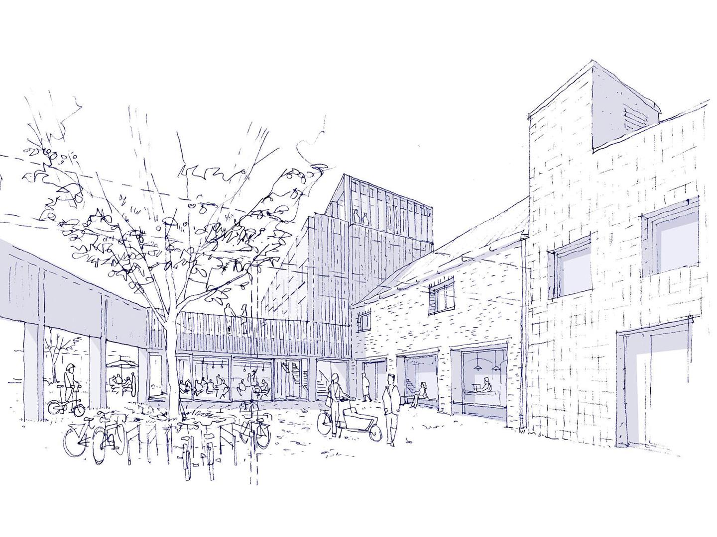 In de Potterij blijven de typerende betonconstructie, de daklichten en het stalen schrijnwerk aanwezig om de historische waarde zichtbaar te houden. Aan de zuidzijde wordt een deel van de vloer en het dak verwijderd om een patio te creëren die licht en lucht in het gebouw brengt. Wat overeind blijft, is een vierkant deel van twee bouwlagen aan de Potterijstraat, gedragen door een centrale kolom, en een compact bouwvolume van drie bouwlagen zonder kolommen aan de achterzijde. De daken van de gebouwen worden verstevigd voor een gezamenlijk dakenlandschap met daktuinen en gerecupereerde serres. Nieuwe liften ontsluiten dit dakterras via twee tuinkamers die als lantaarns boven de site uitsteken en een weids zicht bieden over Mechelen.