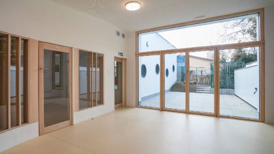 Het Brusselse bureau Pierre Blondel Architectes heeft in Laken een kinderdagverblijf ontworpen, dat een uitbreiding van de naastgelegen school. Het gebouw kenmerkt zich door zijn privétuinen, buitenpatio’s en het thematische initiatieparcours voor de kinderen.