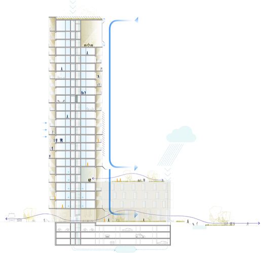 BRUT en CF Moller wonnen een wedstrijd om het project te mogen ontwerpen. Naar eigen zeggen herdefiniëren ze in hun voorstel de woontoren als een gestapelde sociale gemeenschap. De architectuur vertrekt van het idee dat het gebouw vanbuiten toont wat het binnen doet. De sociale kwaliteiten in het ontwerp bepalen mee het design van de toren. De bureaus willen met hun project de paradox uitdagen dat er in een woontoren toch vaak weinig sociaal contact heerst.