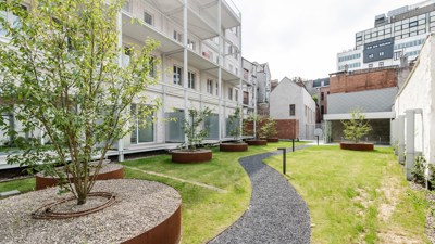 Ook op het vlak van natuur en klimaat toont het project zijn meerwaarde. Zowel de daken als de verhoogde binnentuin werden aangelegd als groendaken, die niet alleen bijdragen aan waterbuffering maar ook de biodiversiteit verhogen. Regenwater wordt opgevangen in putten en hergebruikt, en het groen in de collectieve tuin werd zorgvuldig geselecteerd om bijen, vlinders en vogels aan te trekken.