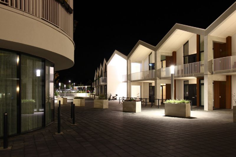 Met dit ontwerp wilde 2by4-architects niet alleen een gemeenschapsgevoel creëren en de nabijheid van groen benadrukken, maar er werd ook gestreefd naar een expressieve moderne architectuur met een sterke identiteit en een warme, natuurlijke afwerking. Met dat doel in gedachten stelden de architecten aanvankelijk een buitenafwerking voor in gladde witte pleisterkalk, gecombineerd met een bekleding in natuurhout. De architecten wilden niet alleen hout gebruiken om een opvallend contrast te verkrijgen, maar voelden zich ook aangesproken door de natuurlijke uitstraling en de duurzame eigenschappen van dit materiaal. Helaas moeten hoge kosten worden gemaakt om een buitenafwerking in hout te onderhouden en te voorkomen dat ze grijs wordt. Daarom kregen de architecten van de klant - een woningcorporatie en zorginstelling - de opdracht een alternatief te zoeken dat op hout gelijkt.