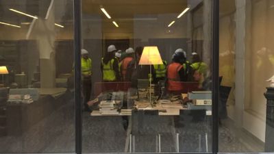 In maart 2012 is de eerste fase van de werken van start gegaan. Er werd toen in de grote binnentuin in het midden van het complex een ondergronds depot gebouwd om de 3 miljoen boeken van de bibliotheek tijdens de werken in op te bergen. De bedoeling was om een perfect ondergronds klimaat te creëren voor de boeken, dat een onderdoorgang en daglicht voor de werkers voorzag. Ook werd er voor voldoende bescherming tegen water gezorgd. In de 3 verdiepingen van het ondergrondse depot werden alle 3 miljoen boeken uit de 20 verdiepingen van de Boekentoren ondergebracht.