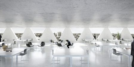 Parkeren, toegangen en logistiek gaan discreet op in het park. Het gebouw is uitermate compact, heeft geen achterkant en is een opvallende sculptuur waarin verregaande gevoeligheid voor omstandigheden samengaat met vormelijke autonomie. Bovendien wordt het ontworpen om te voldoen aan de passiefhuisstandaard.