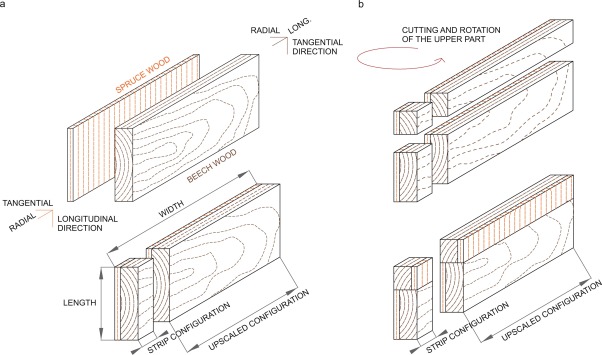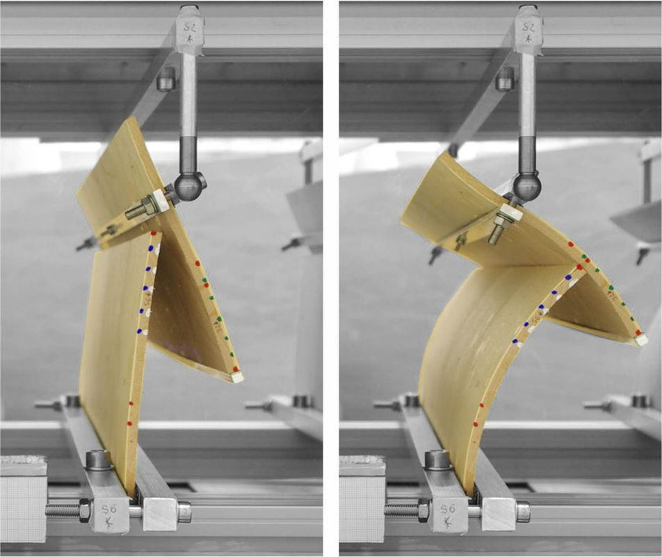 Om het openen en sluiten van de planken te versnellen – bij de kegelvruchten gaat het uiteraard allemaal wat trager – en maximaliseren, bouwden de ingenieurs het systeem in paren. Wanneer het buiten vochtig is staan de planken vrijwel verticaal tegen elkaar aan. Maar wanneer drogere lucht beide planken door de loodrechte houtlagen buigt, duwt de onderste plank zijn ‘collega’ vrijwel horizontaal, met schaduw als resultaat.