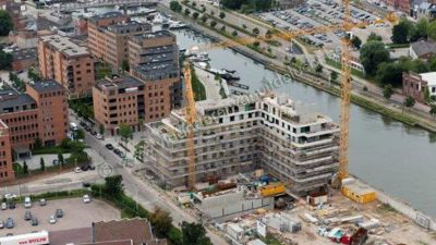 De kiezelparking aan de overkant van de gelatinefabriek in Hasselt zal de komende jaren ernstig transformeren. Voor deze plek werd door BURO II & ARCHI+I binnen het bestaande BPA een masterplan opgesteld. Dit masterplan voorziet enkele flatgebouwen waarbij de oriëntatie en zichten van de woongelegenheden werden geoptimaliseerd. Maar liefst 90% van de appartementen hebben een uitstekend zicht op het water, en dit zonder de achterliggende site van het water af te sluiten. De binnentuinen die tussen de gebouwen ontstaan, openen zich naar het kanaal en naar het achtergelegen gebied toe. Door de fragmentering van het volume en de glazen uitvoering van de luxueuze penthouse-appartementen met dubbelhoge ruimtes wordt de schaal van het project gebroken.