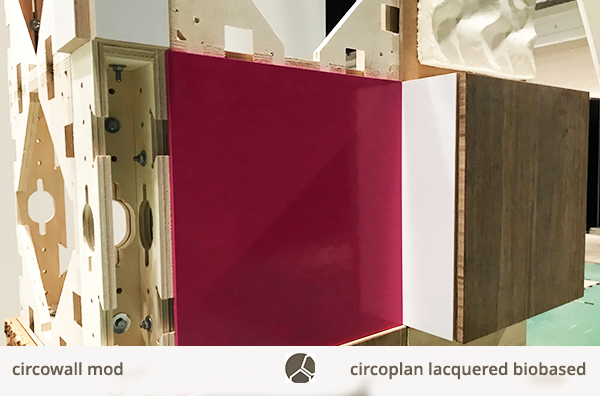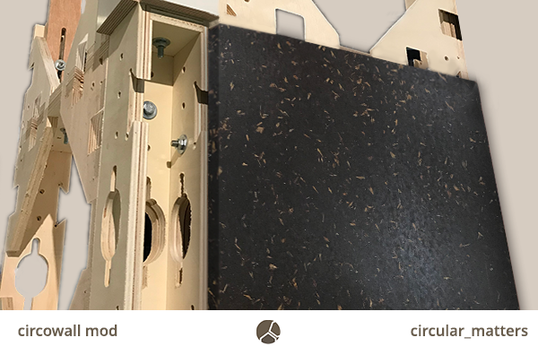 Ook op het vlak van materialen is er sprake van circulariteit. Circowall MOD kan geleverd worden in verschillende houtsoorten, zelfs recuphout uit het Brusselse. Standaard wordt PEFC-gelabeld vurenhout afkomstig uit Wallonië gebruikt. De platen voor de afwerking bestaan dan weer voornamelijk uit natuurlijke, hernieuwbare of zelfs biologisch afbreekbare materialen, zoals hout, mycelium, cellulose of leem.