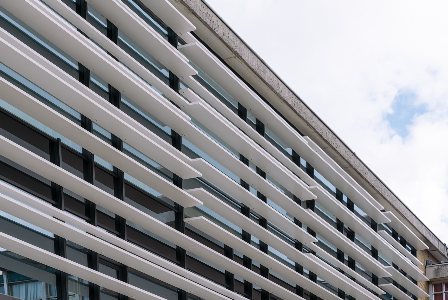 De DucoSun Cubic integreert zonwering naadloos in uw gevelontwerp. Verkrijgbaar met vaste of elektrisch verstelbare lamellen voor horizontale of verticale montage. De rechthoekige lamelprofilering levert een strak lineair karakter. Bij gesloten lamellen ontstaat een homogeen gevelvlak zonder storende onderbrekingen – optimale zonwering met maximale architectonische ontwerpvrijheid.