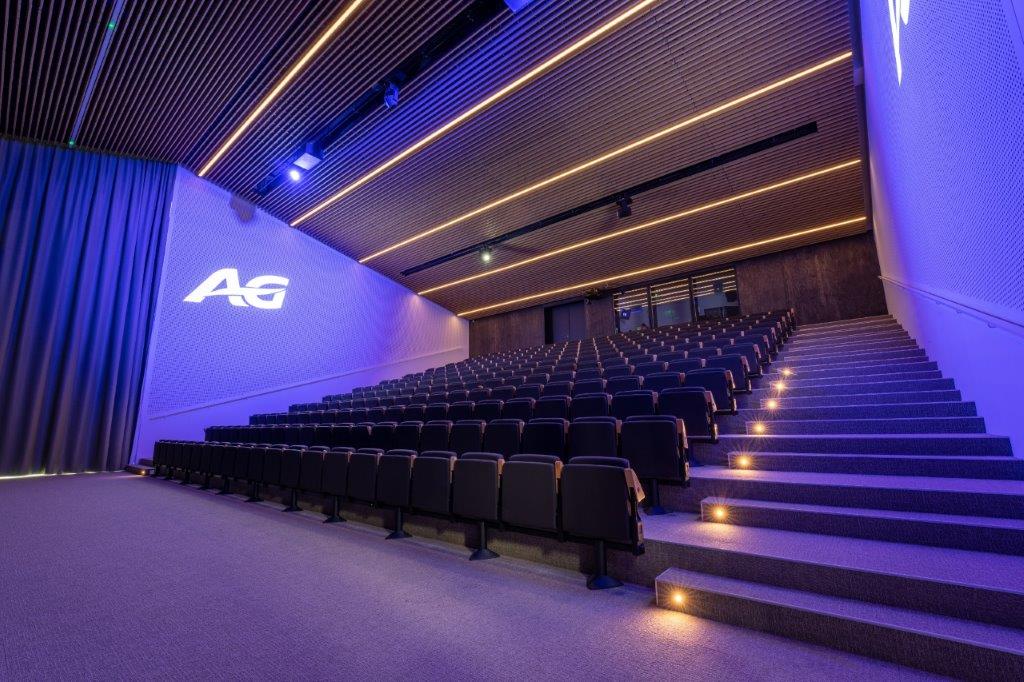 Het brandstabiele grillplafondsysteem van Derako, onderdeel van Hunter Douglas, bestaat uit houten latten die met deuvels aan elkaar zijn bevestigd. De gemonteerde houten latten vormen het roosterpaneel, dat in verschillende lengtes en breedtes kan worden geproduceerd. Het grillplafondsysteem is beschikbaar in een breed aanbod aan houtsoorten, allemaal met eigen kenmerken. Het systeem, dat ook voor de afwerking van wanden kan worden gebruikt, kan eenvoudig worden gemonteerd. Dankzij de keuzevrijheid op het vlak van afmetingen van het rooster, kunnen met het grillplafondsysteem van Hunter Douglas uniek plafonds en wanden worden gecreƫerd.
