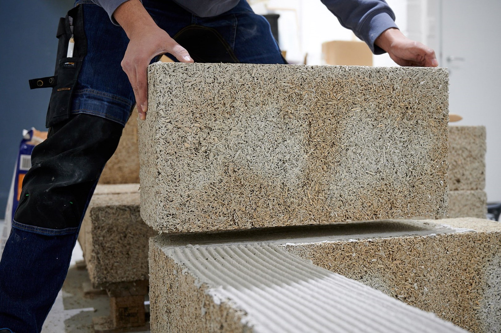 Metselblokken gemaakt van kalkhennep