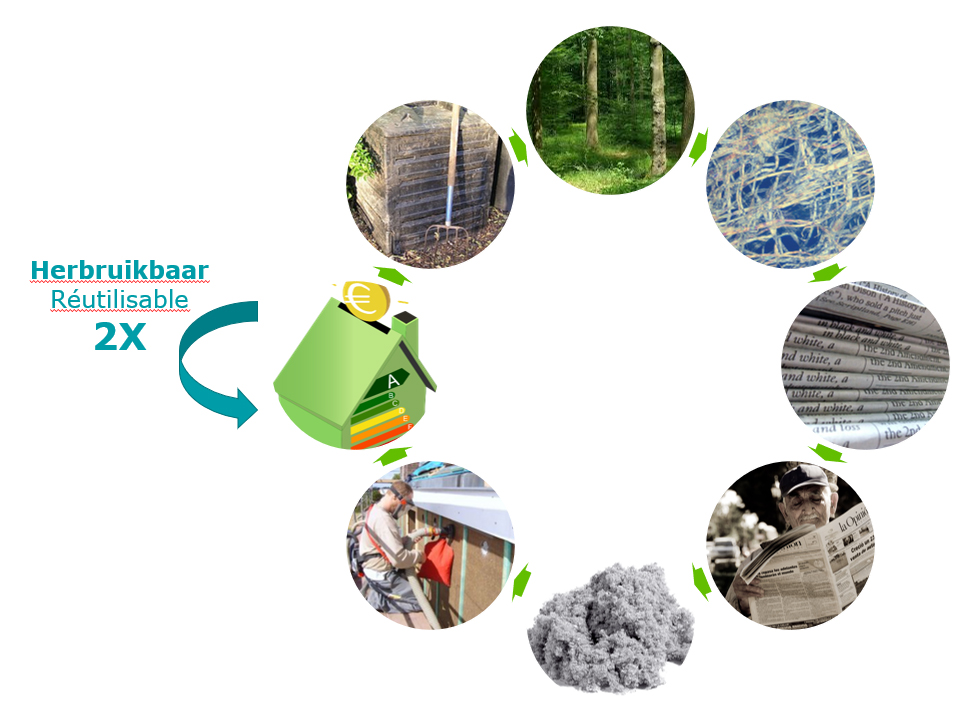 IQ3 wordt haast helemaal gemaakt oud krantenpapier - er wordt enkel een klein percentage zouten aan toegevoegd tegen schimmelvorming en om de brandwerendheid te vergroten, waardoor het product een mooi voorbeeld is van upcycling. De isolatie wordt omkeerbaar geplaatst en kan, als het einde van de (lange) levendsduur nog niet bereikt is, in theorie herbruikt worden. Dat kan tot twee keer toe in andere gebouwen zonder voorafgaande verwerking. Daarnaast kan de iQ3-isolatie na gebruik opnieuw in de productielijn ingebracht worden.